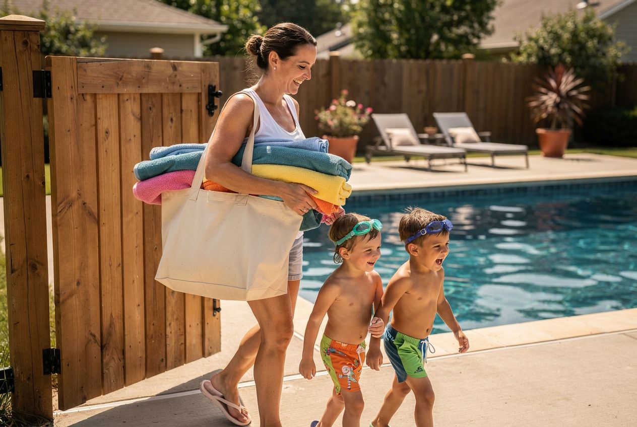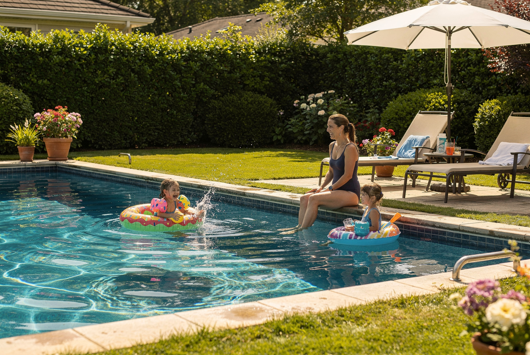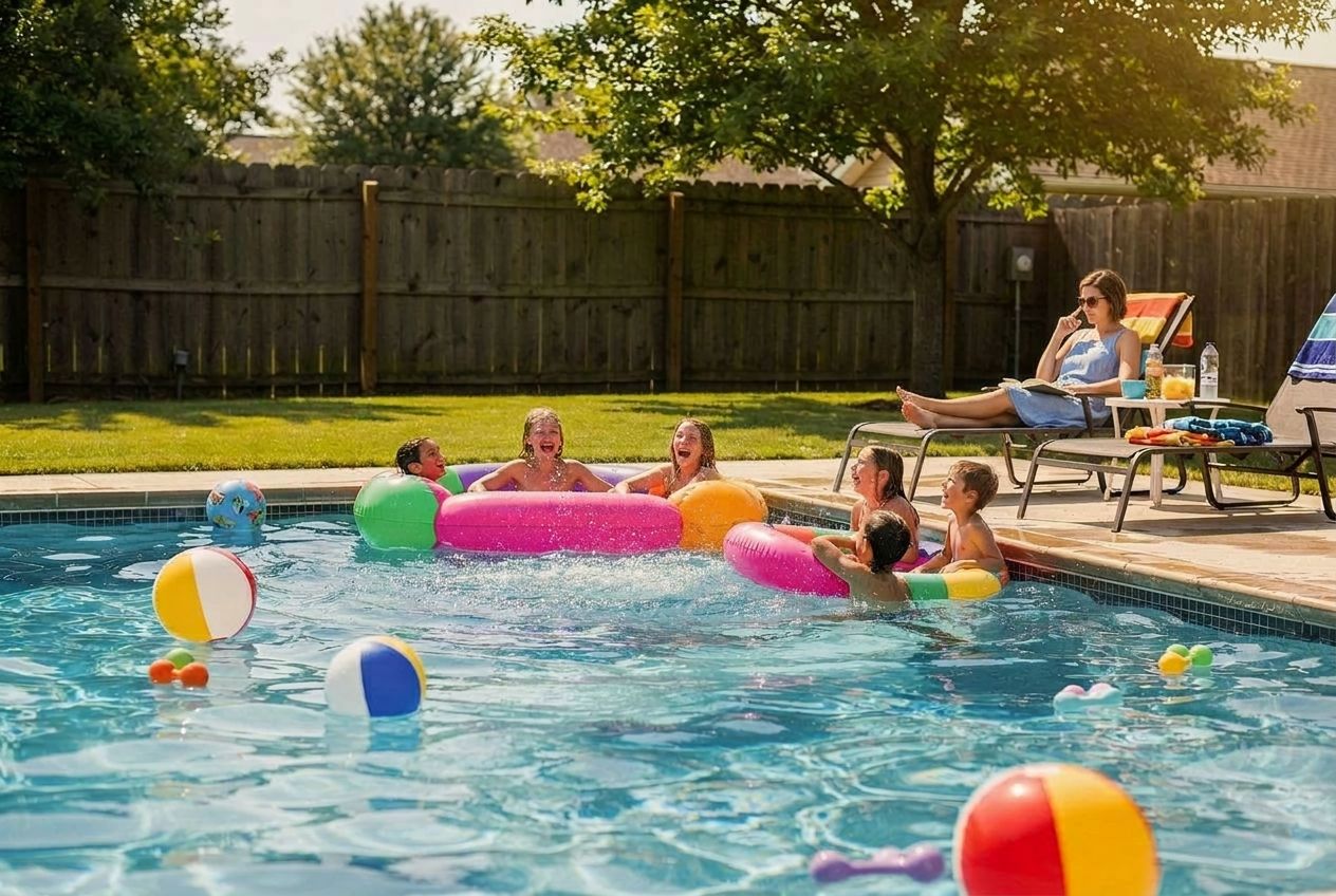 a family swimming at a pool at a Swimply rental by the hour at a Swimply swimming pool listing