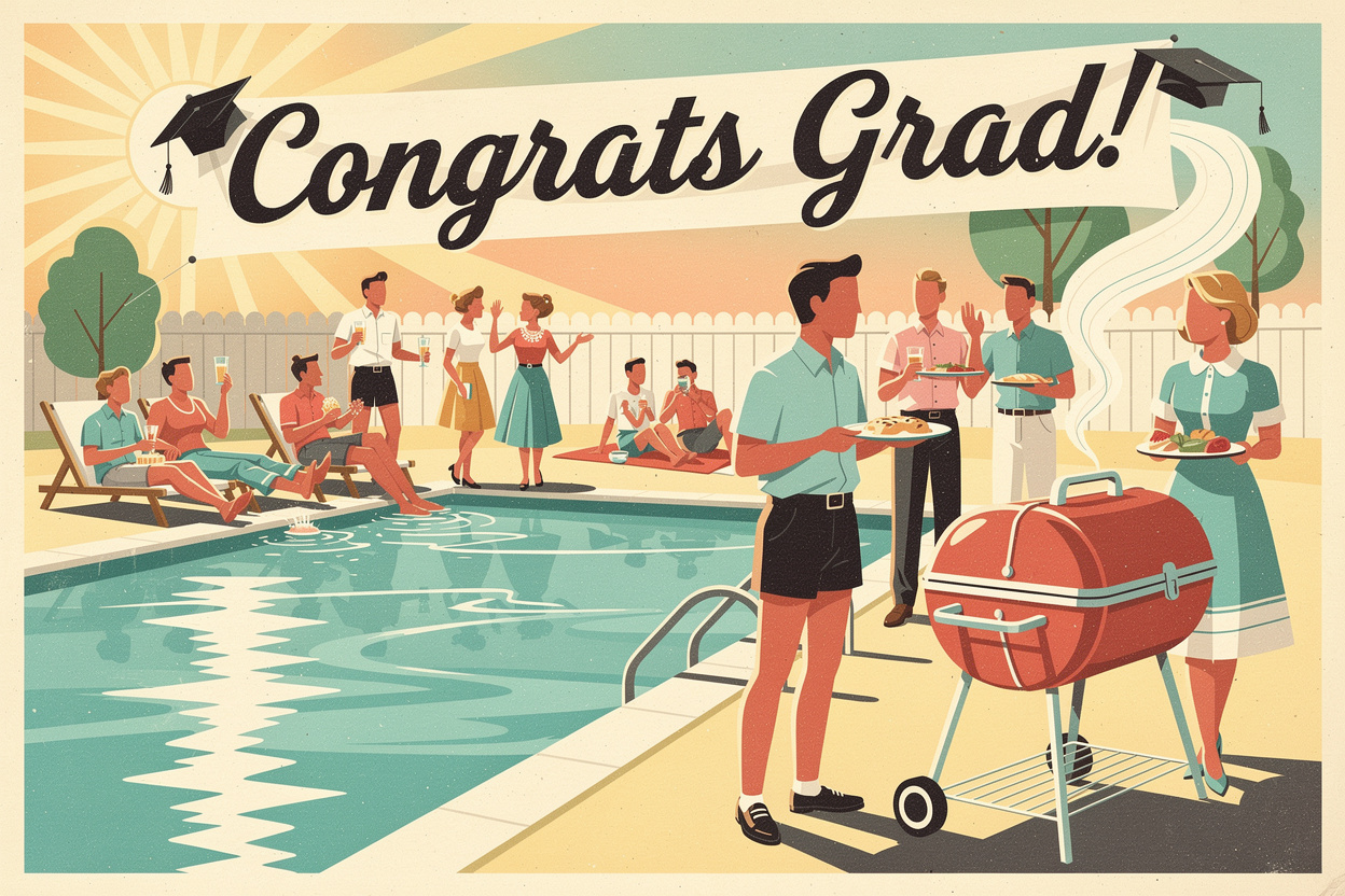 For high-energy grads, rent a private pool on Swimply and go all-in on island vibes. Hang leis, tiki torches, and palm garlands.